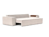 The Newilla sleeper sofa with wide arm is the perfect choice for working in the most comfortable way. Choosing the walnut wood tray alongside it turns the armrest into a versatile replacement for a side table. Newilla features a large storage space, and can easily be transformed into a spacious bed for two. The detachable and washable covers ensure a long product life cycle, and the possibility to change the fabric of the sofa.