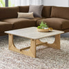The Portico Coffee Table showcases an alluring travertine slab surface and elegantly crafted solid wood base in Walnut or White Oak. The warm, natural travertine grain creates an organic beauty that is unique to each design, reinforced by gently curved corners. These curves are mirrored in the base - with graceful forms and thoughtful proportions that blend the materials into a unified, sculptural accent. The Portico Coffee Table is available in square or rectangular size. Also available as an End Table.