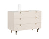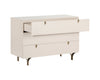 Add beauty to your bedroom oasis with this stylish dresser. Designed with three drawers crafted from rubberwood, featuring a subtle wood grain and a painted cream finish. Uniquely sculpted antique brass feet and drawer pulls complete the look. As wood is an organic, porous material, these pieces will contain natural variation of texture and may also exhibit fine indentations and cracks. Wood pieces will also display a disparity of colour and grain, and visible knots and burls that add to the character of each piece.